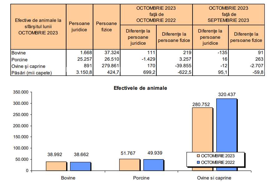 Comparativ cu finalul lunii septembrie 2023, efectivele de animale au înregistrat diferențe semnificative, evidențiind o dinamică în continuă schimbare.