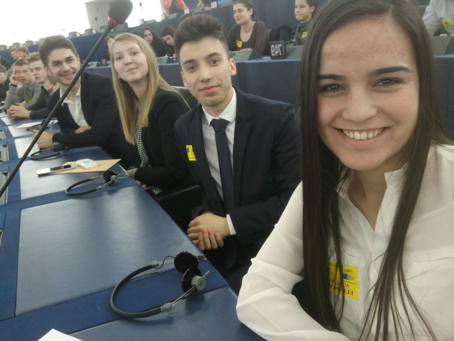 „Participarea mea în acest proiect a însemnat o experiență unică, atât pentru mine, cât și pentru colegii mei. Când ușile s-au deschis și am intrat îm marea sală a Parlamentului European, emoțiile m-au cuprins și eram hotărâtă să dau tot ce-i mai bun din mine ca să fac o schimbare. Momentul în care mi-am dat seama că și părerea mea contează a fost atunci când am avut de apăsat unul din cele trei butoane pentru a vota legile propuse. Pe parcursul zilei, a avut loc și concursul «Eurogame», care ne-a ajutat să comunicăm cu tineri de diferite naționalități. Această experiență m-a ajutat să exersez limba engleză și să conștientizez beneficiile oferite de Uniunea Europeană. Sunt recunoscătoare pentru această oportunitate și sper ca și alți colegi de ai mei să aibă parte de aceleași trăiri unice.” (Arva Marina, clasa a XII-a A)
