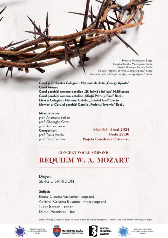 În seara de Înviere, elevii talentați de la Colegiul Național de Artă „George Apostu” din Bacău au invitat comunitatea locală la un eveniment deosebit: un concert vocal-simfonic al celebrului Requiem, compus de Wolfgang Amadeus Mozart.
