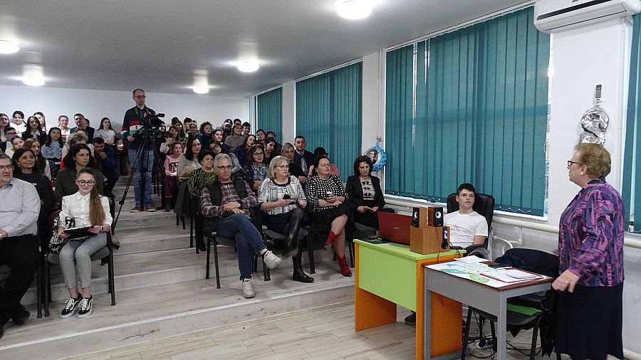 Atmosferă plină de entuziasm asezonat cu relaxare și voie bună în amfiteatrul Școlii Gimnaziale „Mihai Eminescu”, acolo unde, la sfârșitul săptămânii trecute, elevii clasei a VI-a A, alături de profesori părinți și prieteni, au organizat o activitate în care și-au exprimat părerile despre viitor. Astfel, elevii s-au împărțit în patru grupe și au lucrat la niște proiecte menite să îmbunătățească viitorul planetei.[lock_content]