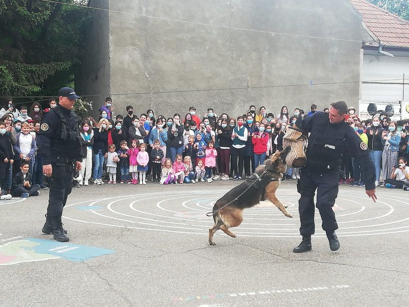 În acest fel, polițiștii și jandarmii băcăuani le-au făcut un cadou elevilor școlii cu ocazia Zilei Internaționale a Copiilor. Astfel, apărătorii au desfășurat activități cu copiii, cea mai impresionantă fiind cea cu câinii de serviciu. Foarte apreciate au fost și tiroliana montată în curtea școlii dar și prezentarea armamentului din dotarea jandarmilor. Celor mici le-au fost luate și amprentele după care au primit legitimații de jandarm pentru o zi.