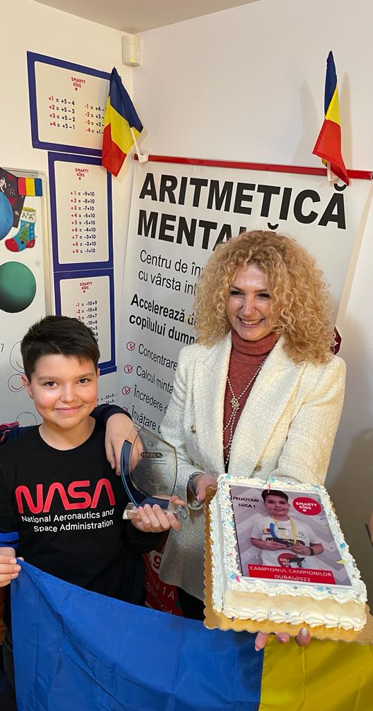 De aproape trei ani copiii din Bacău au participat la cursurile noastre, au obținut rezultate remarcabile, s-au evidențiat în competiții naționale și anul acesta, unul dintre ei, Luca Vartolomei, 12 ani, elev în clasa a V a, la școala Mihail Sadoveanu Bacău, a reușit să câștige titlul de Campionul Campionilor, la Competiția Internațională de Aritmetica Mentala Horus 2022, ce a avut loc în Dubai pe 11 februarie”, a declarat terapeut occupational și psihopedagog Mirela Păduraru, antrenorul de aritmetică mentală al proaspătului campion al campionilor de la Dubai.