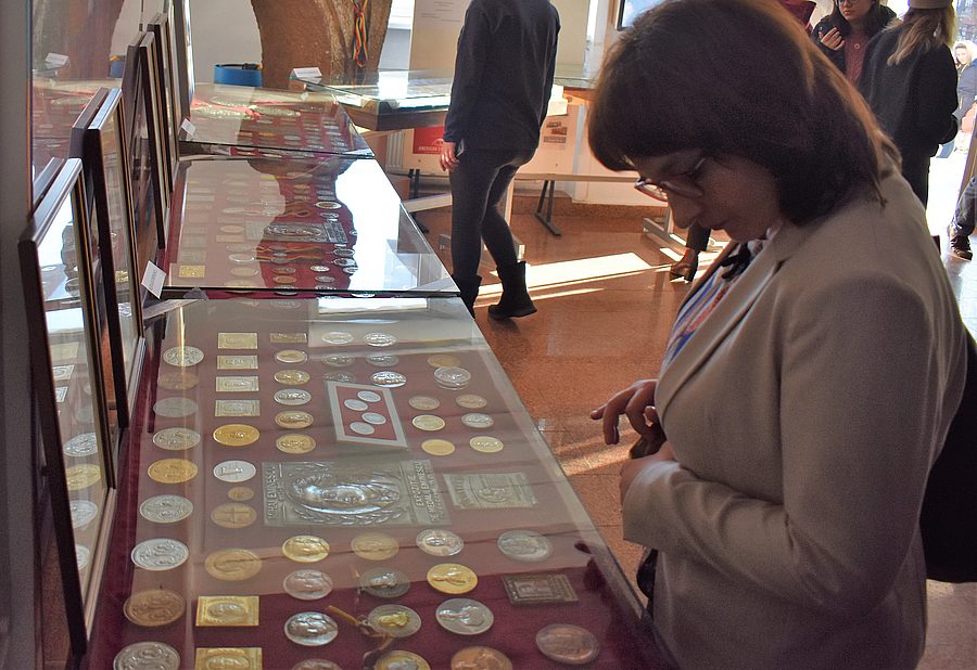 „Simbolul peren al culturii naționale”, așa cum a fost supranumit poetul Mihai Eminescu, este pentru o săptămână oaspetele în Bacău. Casa i-a fost deschisă marți la Universitatea „Vasile Alecsandri”, în Corpul C, unde a fost vernisată o impresionantă expoziție de medalii, de insigne și de gravuri, cu exponate din colecția cunoscutului medalist băcăuan, istoricul Vilică Munteanu.