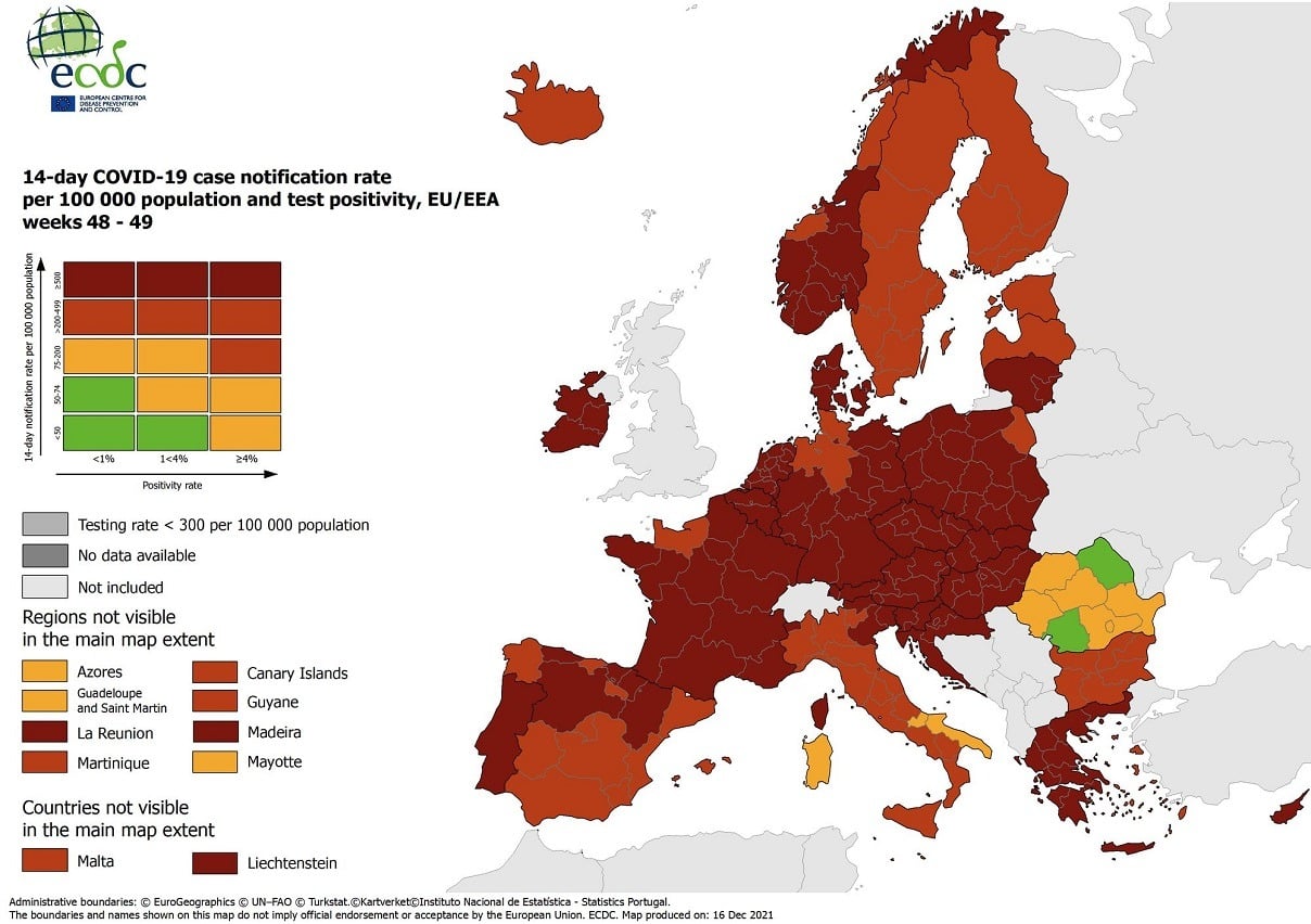 GERMANIA: Zilele astea s-a atins recordul absolut de la începutul pandemiei (peste 60 000 de infectări/zi), ceea ce e mai mult decât dublu recordului dinaintea începerii campaniei de vaccinare. Numărul deceselor zilnice a ajuns la peste 500, ceea ce nu s-a mai întâmplat de la începutul campaniei de vaccinare. În prezent peste 80% din populația adultă este vaccinată cu două doze.