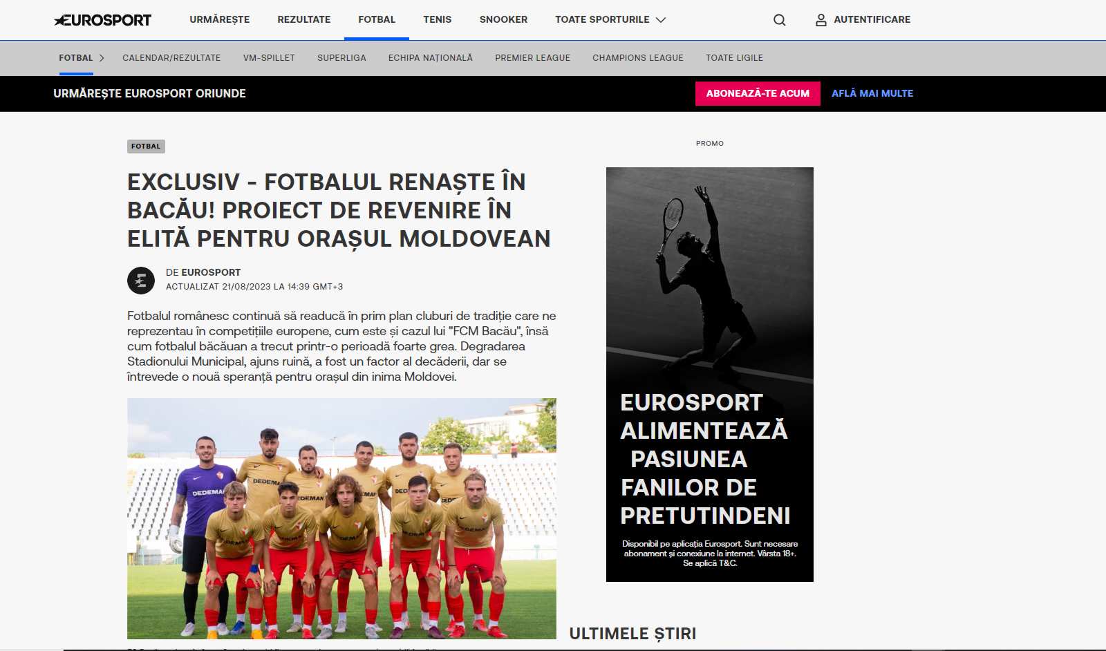 Într-un moment de entuziasm și speranță, orașul Bacău și locuitorii săi își îndreaptă atenția către un nou proiect ambițios care promite să aducă prosperitate în lumea fotbalului. Într-un articol recent publicat în Eurosport, s-a dezvăluit că dragostea arzătoare a băcăuanilor pentru fotbal își găsește ecoul într-un proiect îndrăzneț ce vizează revitalizarea sportului preferat al comunității, scrie Eurosport.