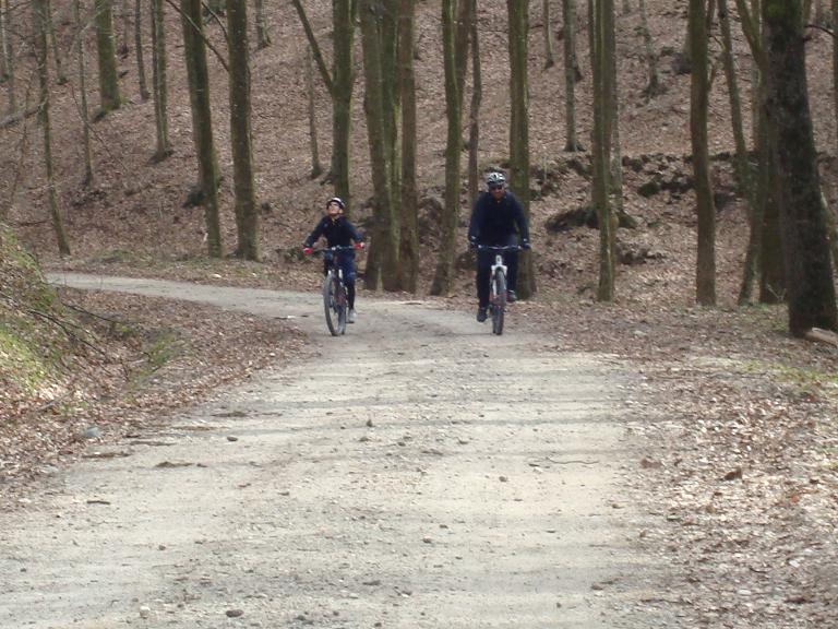 In cursul saptamanii nu prea am timp sa ies pentru ca sunt la scoala, dar de acum incolo, in fiecare week-end imi iau portia de miscare”, spune David Huluba. Tatal sau il urmeaza indeaproape. Si-au facut incalzirea pe bicicleta din oras si pana la intrarea in padure, mergand usor. Aici, pe drumul forestier, pedaleaza detasati pentru ca au scapat de stresul din trafic.