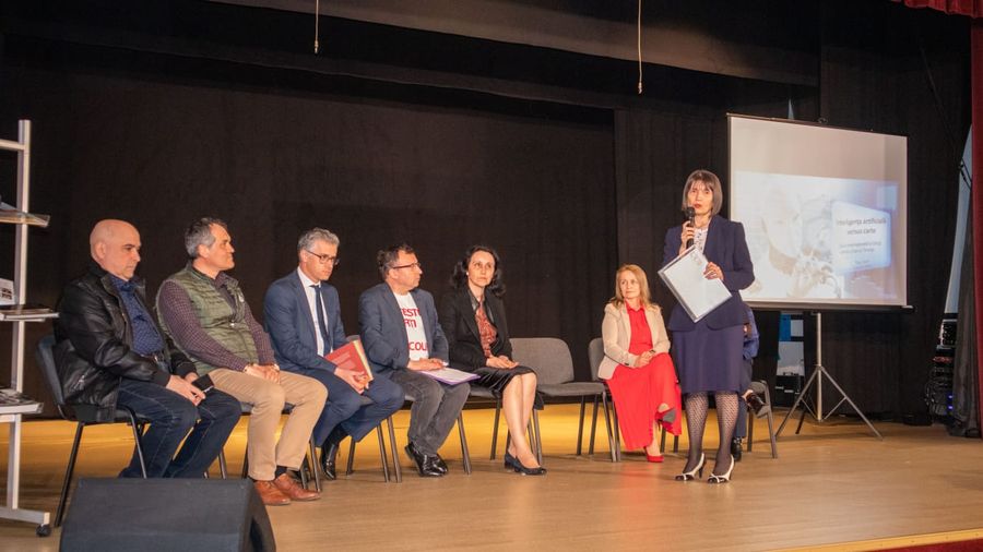 Și pentru că, principala sărbătorită a fost cartea pentru copii și tineret, programul a inclus și o dezbatere interactivă, cu tema ,,Inteligenţa artificială versus carte”, la propunerea și în prezentarea dnei Gabriela Gîrmacea, urmată de intervențiile invitaților, care au răspuns acestei provocări, uneori, privită cu umor și oarece detașare, alteori, cu vădite semne de îngrijorare pentru viitorul societății umane, menținând însă, un echilibru destul de delicat, pus între carte și inteligența artificală. Din expunerile stimaților invitați nu au lipsit momentele în care au descris unele experiențe personale, cu privire la boom-ul și influența inteligenței artificiale asupra factorului uman, cu referiri la modul în care aceasta se extinde tot mai mult în spațiul mental-emoțional al copiilor și tinerilor aflați în plin proces de educare și formare pentru viitor (aici, cu o excelentă perorație a universitarului și scriitorului, Adrian Jicu, o prezență insolită și mereu plăcută receptorilor de cultură).
