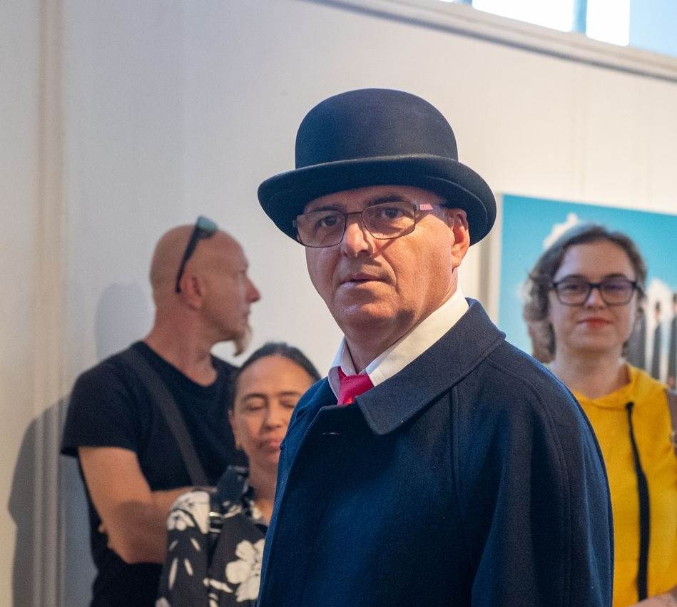 A vorbit publicului despre VEM și despre Rene Magritte Dionis Pușcuță, artist plastic, director al Complexului Muzeal „Iulian Antonescu”: „Suntem martorii unui eveniment, o expoziție unică de fotografie a cunoscutului artist VEM, o reinterpretare fotografică a operei picturale a celebrului artist suprarealist belgian Rene Magritte, Ceci n‘est pas un Magritte, în traducere neaoșă Acesta nu este un Margritte, este un VEM. Iată că vine caricaturistul VEM, umoristul, în fața dvs. cu fotografie, de altfel și-a adăugat la CV un master la Universitatea din Iași- fotografie-video, avem aici o expoziție extraordinară, o noutate pentru Bacău, pe care vă invit nu numai să o vedeți, ci și să o priviți.” Curatorul expoziției este un alt mare artist al fotografiei, Viorel Cojan.