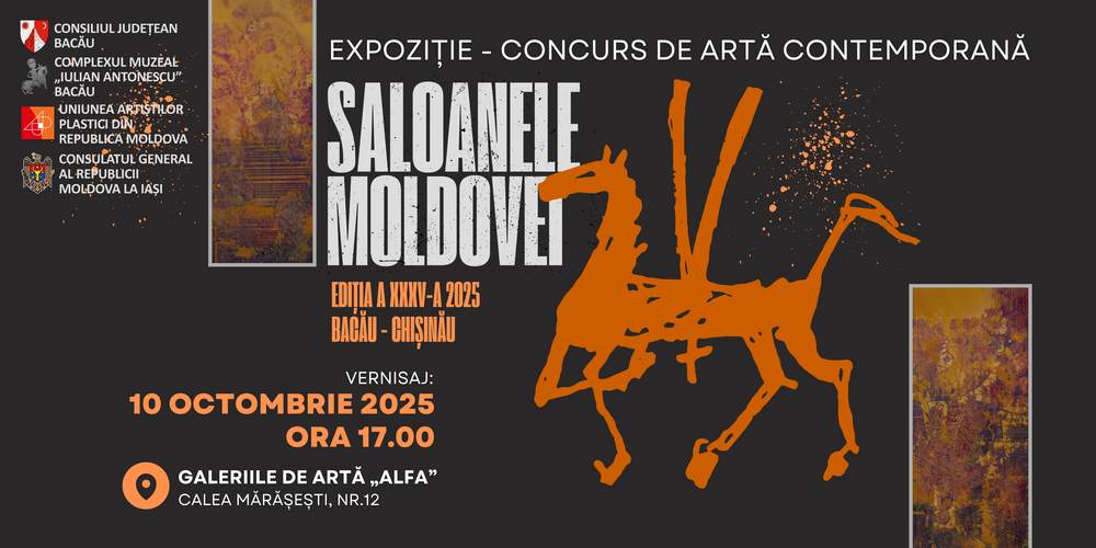 Complexul Muzeal „Iulian Antonescu” adresează iubitorilor de artă invitația de a participa la vernisajul Expoziției-concurs de artă plastică contemporană „Saloanele Moldovei, proiect cultural ce atinge în acest an pragul celei de-a XXXV-a ediții. Evenimentul va avea loc vineri, 10 octombrie 2025, ora 1700, la Galeriile de Artă „Alfa” și se va bucura de prezența Excelenței Sale, domnul Ion Coșer, Consul General al Republicii Moldova la Iași.