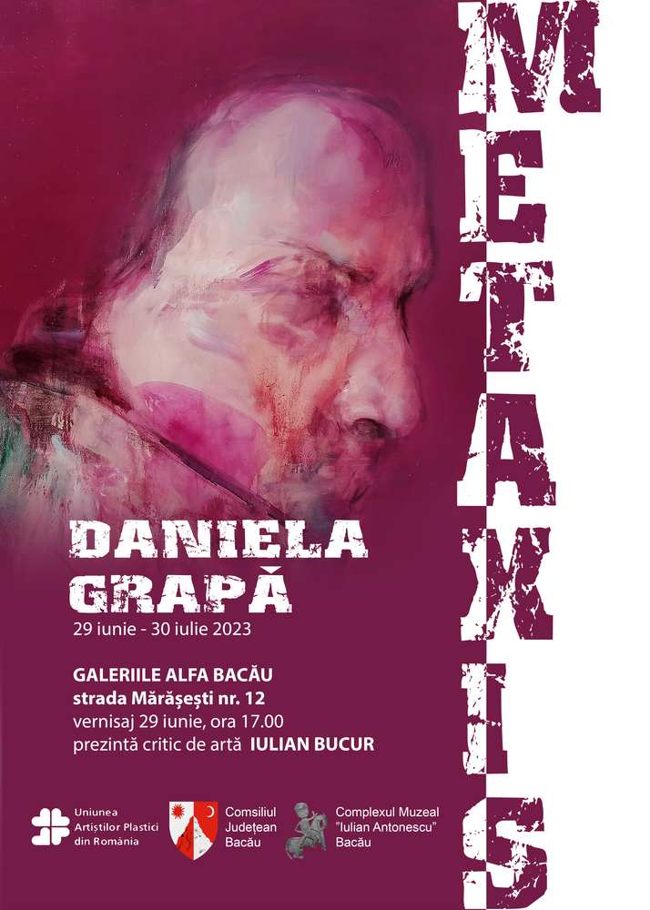Galeriile „Alfa” ale Muzeul de Artă din cadrul Complexului Muzeal „Iulian Antonescu” Bacău invită amatorii de artă, joi, 29 iunie, ora 17.00, la vernisajul expoziției Metaxis, a artistei Daniela Grapă, membră a Uniunii Artiștilor Plastici din România – Filiala Iași. Prezentarea lucrărilor va fi realizată de criticul de artă Iulian Bucur.