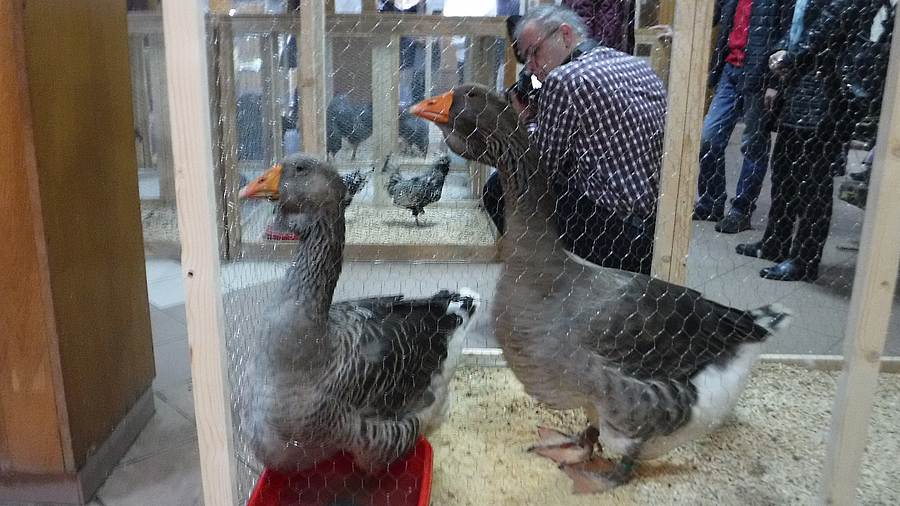 Am beneficiat de colaborarea unor colecţionari şi crescători particulari din Bacău, pentru care le mulţumim”, a spus Emil Corduneanu. Sunt în expoziţie găini de ornament, de carne, de ouă şi rasă mixtă, printer care Moţata Padovană, Plymouth Rock, Brahma – herminat deschis, combatant Ko Shamo (la origini păsări de luptă); fazani şi păuni, celebrele gâşte de Toulouse (rasa industrială – pentru ouă şi rasa pentru carne), care pot ajunge la peste un metru înălţime şi o greutate, la maturitate, de aproape 20 de kg.