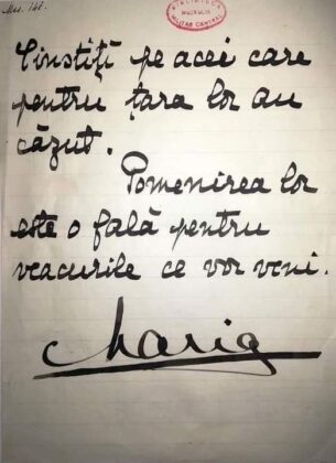 Iar în amintirea timpului petrecut pe aceste meleaguri, familia regală a ridicat o biserică, în inima Bucureștiului, închinată eroilor din Primul Război Mondial, nu departe de Arcul de Triumf, ce poartă numele Mănăstirea Cașin!