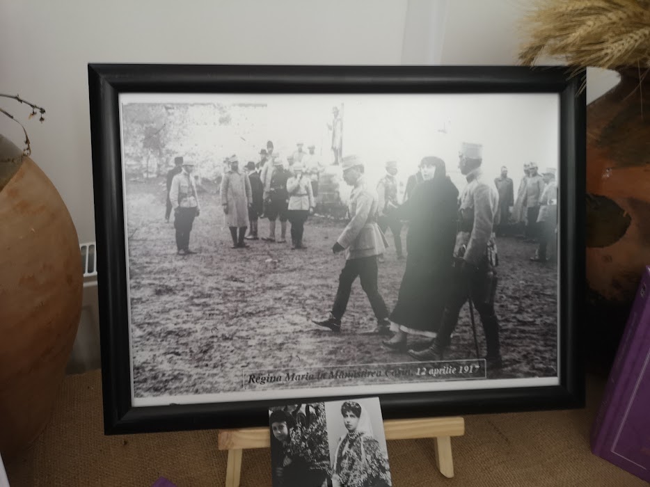 Fotografiile înrămate și prezente mai peste tot prin școală, rememorează diverse evenimente din timpul Primului Război Mondial, pășind pe aceeași bucată de pământ pe care, în 1917 pășea Regina Maria, o dată cu intrarea acesteia în curtea vechii mănăstiri a comunei. „Am fost alături de ei pretutindeni, în spitale, pe front și chiar în tranșee, i-am văzut transformându-se treptat din oameni scheletici, pe jumătate morți de foame, în ființe omenești robuste. Mulți soldați muribunzi mi-au șoptit cu ultima suflare că pentru mine luptaseră, pentru că eu eram casa, mama, credința și speranța”, scria Regina Maria în celebrul său jurnal ,,Povestea vieții mele”.