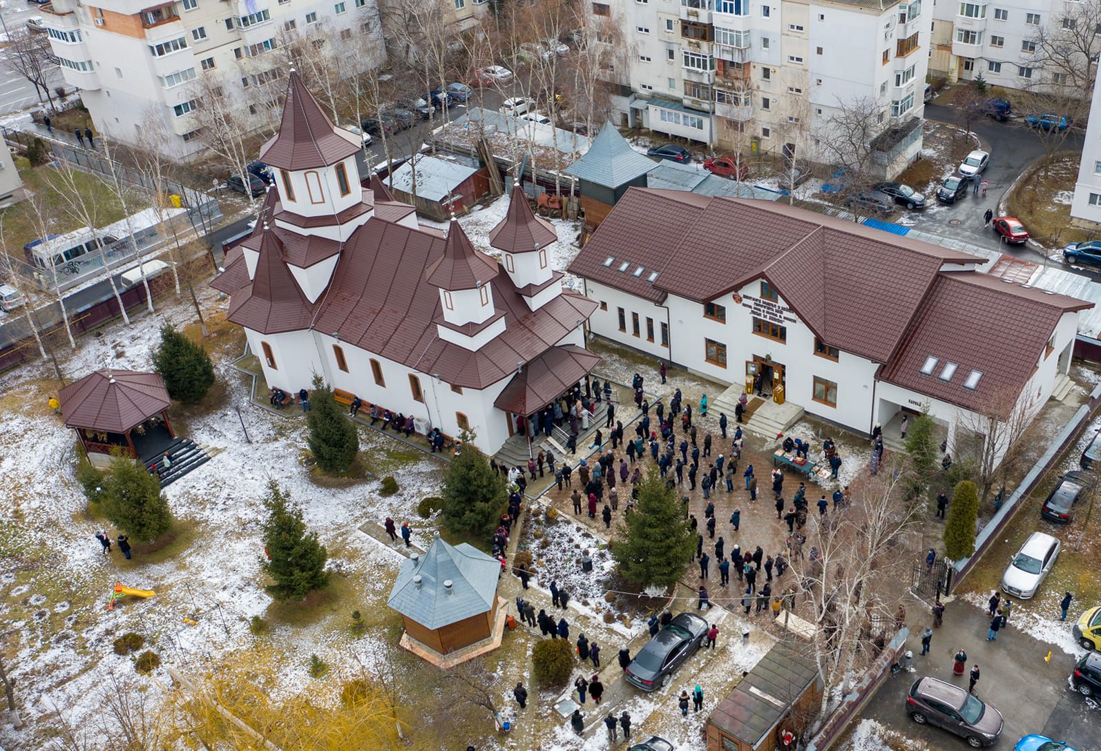 Cu toate acestea, clădirea este funcțională și deja a găzduit o serie de activități. La parter există o sală de mese acolo unde se desfășoară acestea. „Activitățile le desfășurăm mai mult vara, pentru că iarna e mai greu din cauză că nu avem căldură. Mai facem activități în biserică. Așadar acestea continua indiferent de condiții. Sâmbăta avem o grupă de copii cu care desfășurăm mai multe activități, pentru că avem un parteneriat cu Școala Mihai Drăgan de aici din zonă. Tot felul de activități facem. De exemplu, pe 8 martie vom avea un miniconcert dedicate mamei. Când vom avea centrală, vom oferi și ore de meditație pentru diverse materii. Am avut deja discuții cu anumiți profesori în acest sens”, susține părintele paroh de la „Sfinții Trei Ierarhi”.