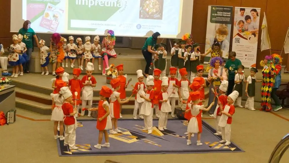 Programul dedicat de Asociația AGRICOLA învățării și adoptării unui stil de viață sănătos a continuat și dupa-amiaza următoare, 26 august, în livada din curtea Grădiniței AGRICOLA, unde peste 100 de copii preșcolari însoțiți de părinții lor, cadre didactice ale grădiniței și reprezentanți ISJ Bacău au sărbătorit Ziua Grădiniței Agricola gătind împreună salate din legume sănătoase și carne de pui cu creștere lentă sub îndrumarea prețioasă a renumitului Chef Cezar Munteanu.