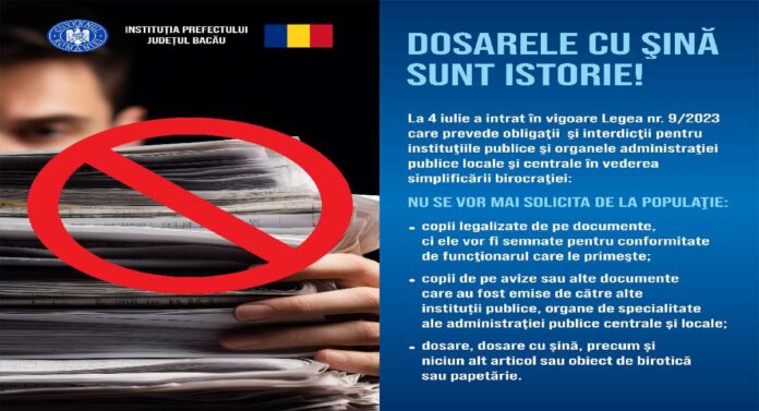 Marți, 4 iulie 2023, a intrat în vigoare Legea nr. 9/2023, care aduce schimbări semnificative în vederea simplificării birocrației în instituțiile publice și administrația publică locală și centrală. Prefectul Lucian Bogdănel a făcut declarații în acest sens, prezentând principalele obligații și interdicții impuse de această lege.