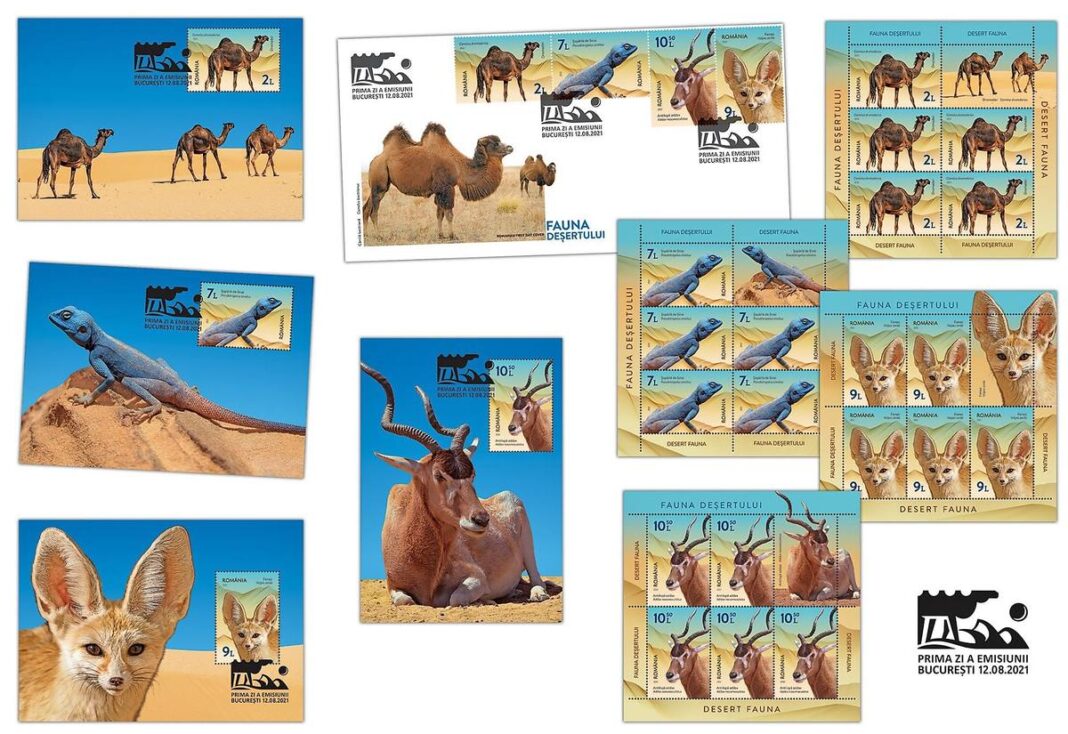 Magazinul Romfilatelia din Bacău pune în vânzare, de joi, 12 august, emisiunea de mărci poștale „Fauna deșertului”. Cele patru timbre și plicul „prima zi” ilustrează specii de animale care trăiesc în zonele deșertice din Africa și Asia.