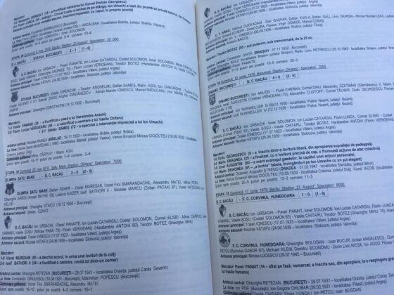 De la primul gol până la ultimul cartonaș galben, nimic nu lipsește din totalul celor 1345 de pagini. Sunt publicate toate casetele tehnice ale meciurilor oficiale de A, B și C, inclusiv cu descrierea fiecărui gol în parte. Ca exemplu, la partida de Divizia B din 30 aprilie 1967 dintre Dinamo Bacău și Politehnica București 3-0, cititorul va afla că tabela a fost deblocată de Comănescu, printr-un șut puternic și că în minutele 35 și 77, Vasile Panait a rotunjit scorul, mai întâi cu un șut plasat din marginea careului și apoi dintr-un penalty obținut ca urmare a unui fault comis asupra lui Mihai Rugiubei.