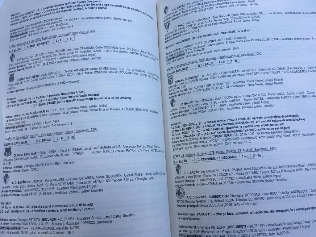 Lăsând gluma la o parte, fiecare ediție de campionat are inclus clasamentul final, lotul folosit de băcăuani, cu nume, prenume, locul și data nașterii, meciuri, goluri, minute adunate și cartonașe primite, dar și parcursul echipei de tineret, de trei campioană națională: în 1970, în 79 și 82.