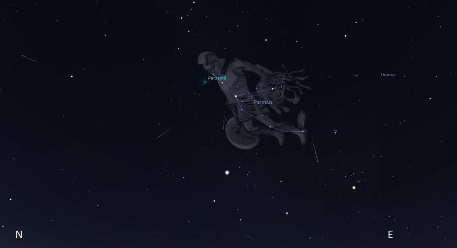 Radiantul, adică locul de pe cer, de unde, printr-un efect de perspectivă, par să provină meteorii, este constelația Perseu care dă și numele curentului meteoric.