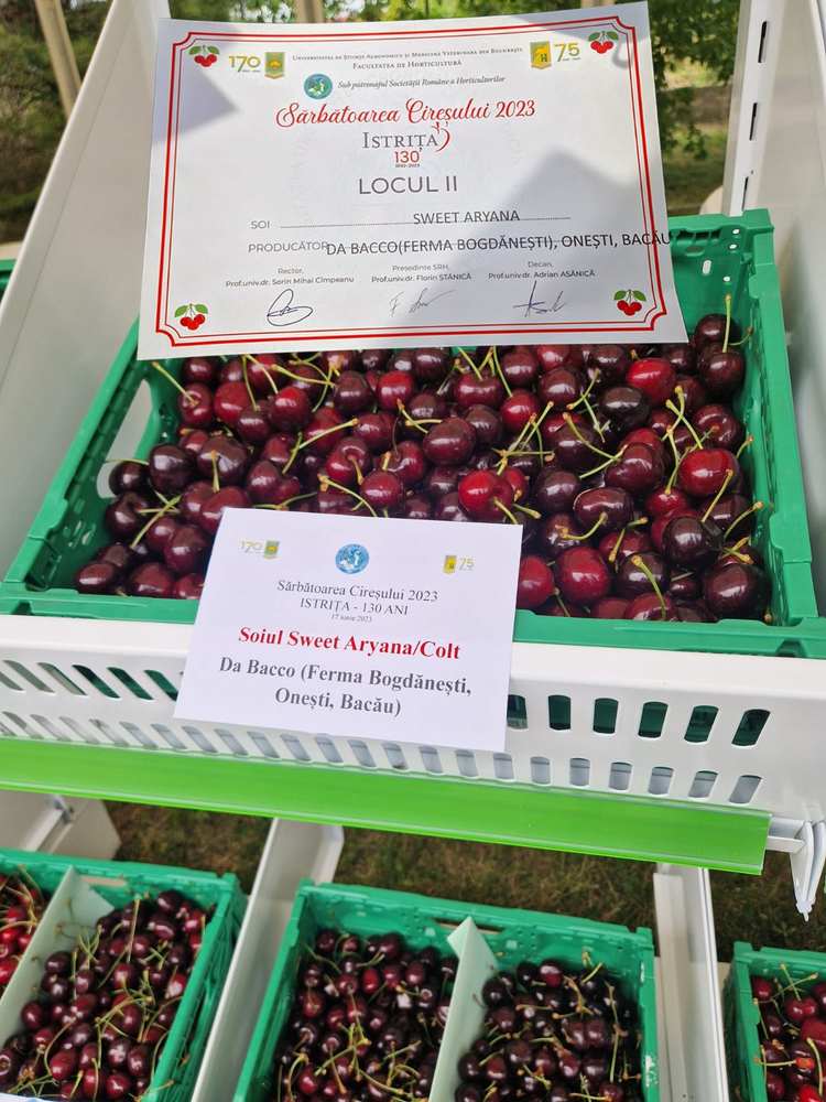 De altfel, afirmația poate fi susținută și de premiul pe care „Ferma Bogdănești” l-a obținut, recent, la o competiție de profil – „Sărbătoarea cireșului” – organizat de Universitatea de Științe Agronomice și Medicină Veterinară din București, la Stațiunea Istrița, din comuna Săhăteni, județul Buzău. Aici, la festivalul – concurs, soiul de cireșe „Sweet Aryana”, naturalizat la Bogdănești, a primit calificative excelente din partea unui juriu specializat – cadre universitare, fermieri, producători de material pomicol -, plasându-l pe locul doi, dintre cele peste 70 de alte soiuri prezente în competiție. Printre degustători s-au numărat și câțiva invitați veniți din Camerun, Coasta de Fildeș, Irak, Turcia și Madagascar. Cu toții au apreciat gustul cireșelor românești, acordându-le calificative foarte bune. „Participarea noastră a fost foarte importantă, în condițiile în care evenimentul a ajuns la a IX-a ediție, cu peste 70 de soiuri participante. Ca să nu mai spun că au fost prezenți colegi din aproape toată țara, inclusiv de la Tulcea. E un fel de «Olimpiadă a cireșelor», la nivel național. La departajare, au contat forma fructului, mărimea, omogenitatea culorii, precum și aromele și brix-ul, respectiv fructoza din cireașă – dulceața, cum s-ar spune. Or, într-o lădiță, din 1.000 de cireșe, să zicem, la 99,99 % trebuia să fie omogenitate, sub aspectul tuturor criteriilor amintite”, ne-a explicat Marius Gaidanof, consultant tehnic la „Ferma Bogddănești”.