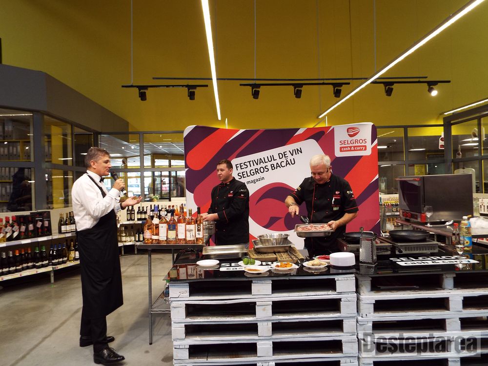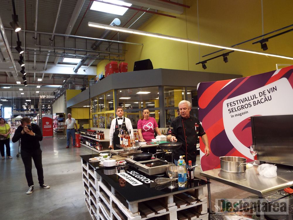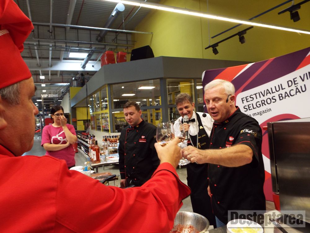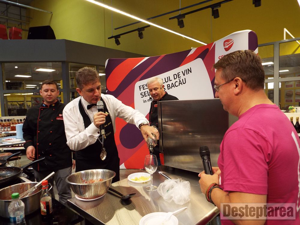 Unul dintre cei mai renumiți maeștri bucătari români, Chef în toată puterea cuvântului, Victor Melian, a gătit, sâmbătă la prânz, pentru băcăuanii aflați la Festivalul de vin de la Selgros pasionați de gastronomia de înaltă clasă. Alături de chef Melian a fost însă și somelierul Sergiu Nedelea, pentru că masa fără un vin bine ales ar fi ca nunta fără lăutari