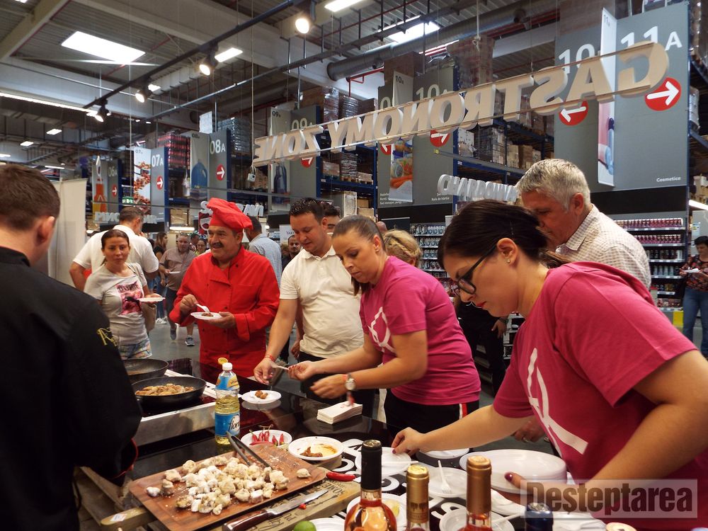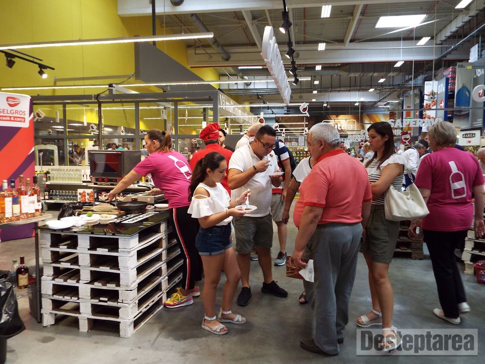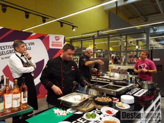 A durat ceva procesul tehnologic, dar asistența nu s-a plictisit, pentru că Sergiu Nedelea a dat cep unor sticle de vin roze, pe care le-a „povestit” și le-a recomandat ca fiind cele mai potrivite pentru ce avea să iasă din tigăile lui Chef Melian. Și cum le stă bine bucătarilor aflați în exercițiul funcțiunii, s-au și degustat eșantioanele de vin și s-au lămurit apoi și câteva dintre secretele preparatului aflat încă în puterea focului.