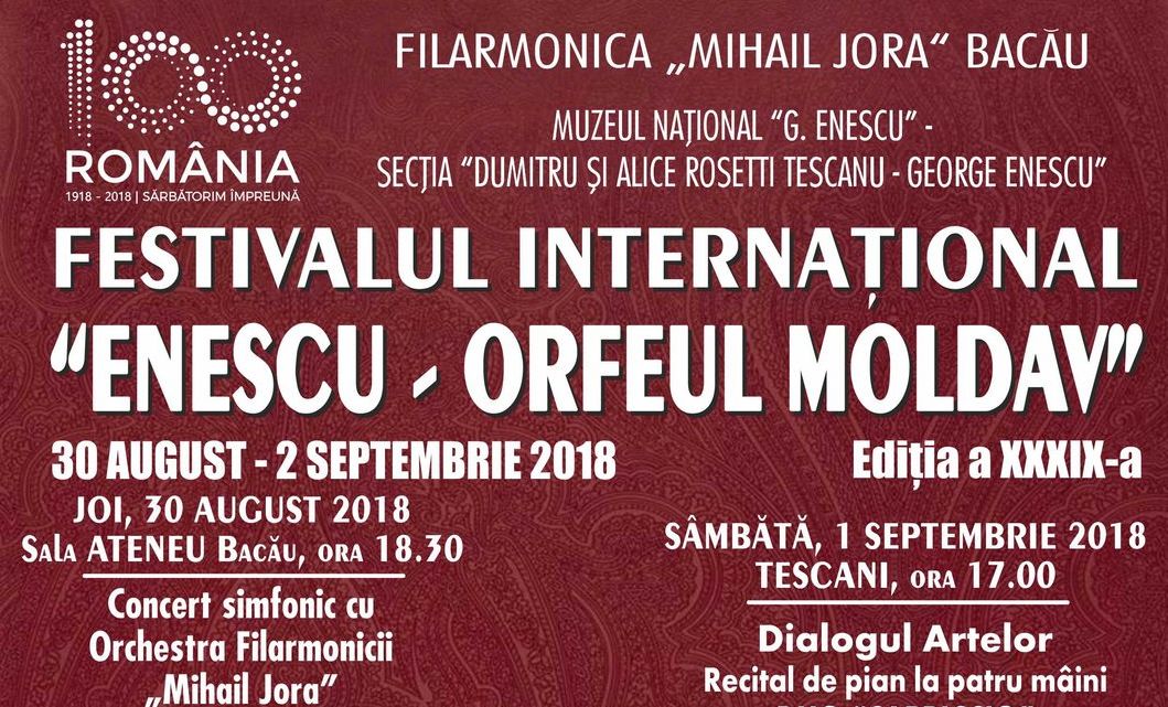 Festivalul „Enescu – Orfeul Moldav”, ediţia a XXXIX-a se desfăşoară, anul acesta, în perioada 30 august – 2 septembrie, la Sala „Ateneu” din Bacău şi la Tescani, Secţia „Dumitru şi Alice Rosetti Tescanu” a Muzeului Naţional „George Enescu”.
