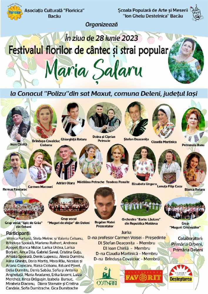 Într-un peisaj minunat, la conacul Polizu din satul Maxut, s-a desfășurat prima ediție a festivalului florilor de cântec si strai popular „Maria Șalaru” realizată acasă la ea, în Delenii Iașului.