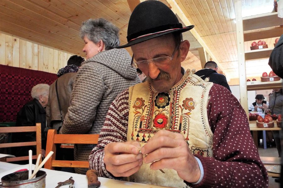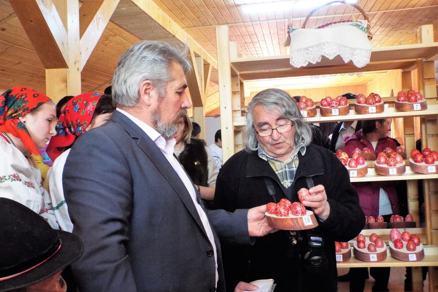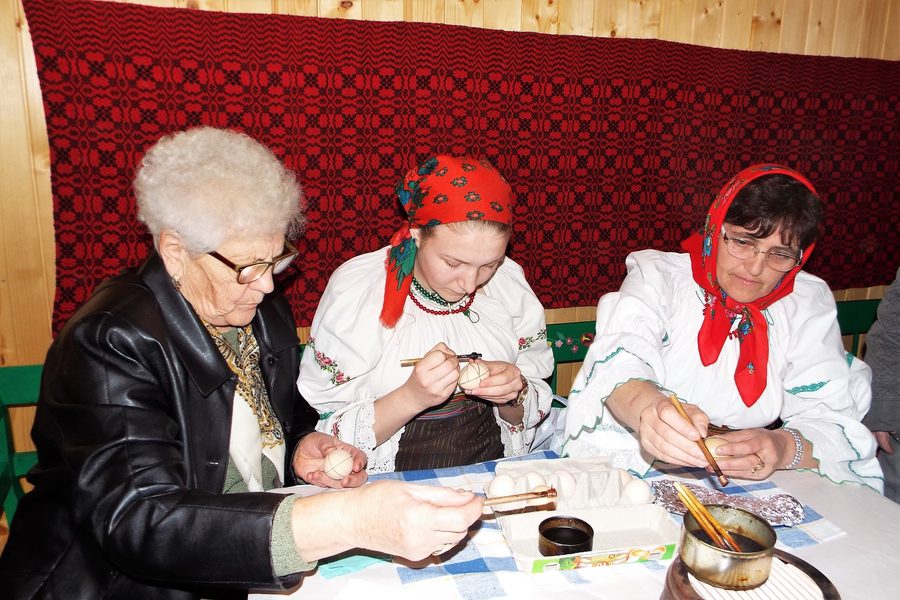 Îmbrăcați în costume populare specifice zonei Ghimeș, concurenții, tineri și vârstnici, au luat loc în cele trei ateliere de încondeiat ouă și au lucrat chiar în fața vizitatorilor minunate bijuterii specifice sărbătorii Paștelui: ouă încondeiate.