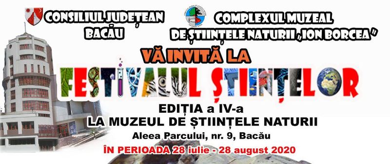 Proiectul cultural „Festivalul Științelor” a ajuns la a IV-a ediție anul acesta. Acest eveniment, organizat de Complexul Muzeal de Științele Naturii „Ion Borcea” Bacău, s-a bucurat anual de aprecierea publicului deoarece conceptul presupune prezentarea informațiilor, machetelor și exponatelor autentice într-un cadru non-formal la workshop-urile organizate. Activitățile vor fi organizate zilnic, între 28 iulie – 28 august 2020, cu excepția zilelor de sâmbătă și luni, între orele 10.00-13.00.