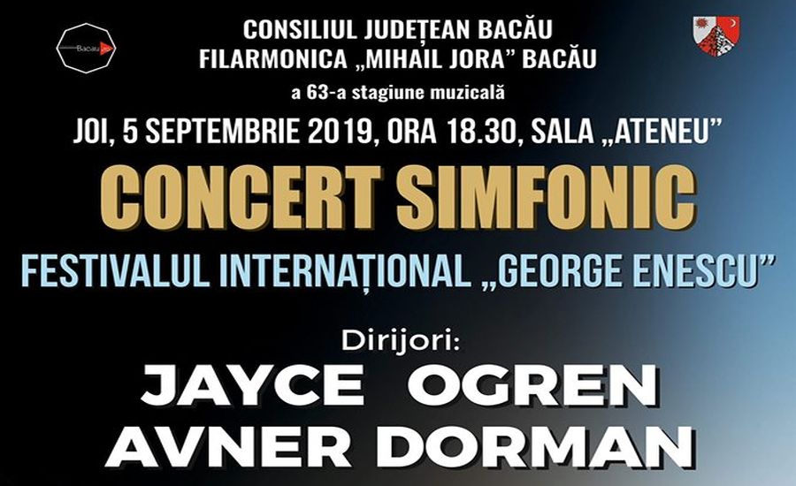 În această seară, de la ora 18.30, în Sala „Ateneu”, filarmonica băcăuană va suţine un concert dirijat de Jayce Ogren şi Avner Dorman, solişti Akiko Meyers – vioară, Simone Rubino – percuţie, Ziyu He – vioară și Emil Vişinescu – clarinet.