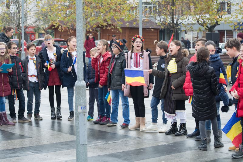 La finalul acțiunii, elevii au format un steag din cartoane roșii, galbene si albastre, pe care le-au înălțat la cer strigând în cor: “La Mulți Ani, România”.