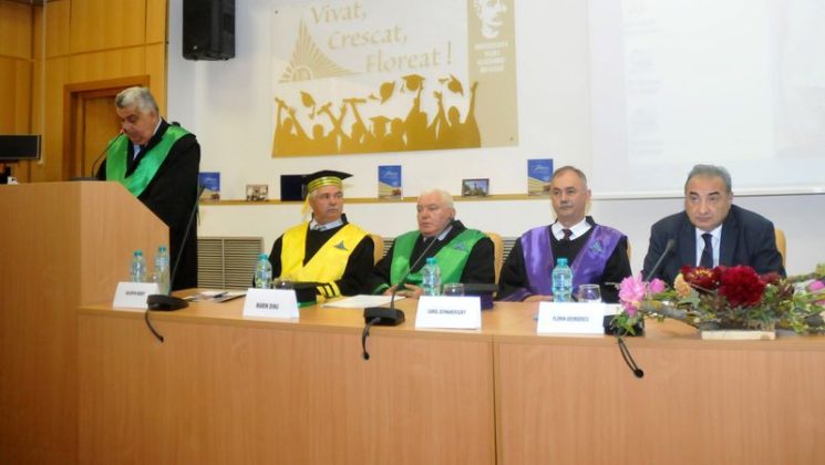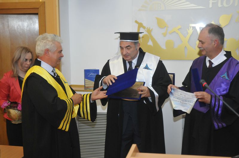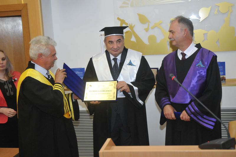 Tema discursului economistului Florin Georgescu la conferirea titlului de Doctor Honoris Causa a fost „Dezvoltarea economico-socială – obiectivul fundamental al României în perspectivă”, în care a făcut, în stilul său caracteristic, o succintă, dar pertinentă și acidă radiografie a tranziției economiei României după anul 1989 și la trecerea țării de la modernizare la dezvoltare. Vorbitorul a analizat și curentele de gândire economică care fac referire la dezvoltarea unui stat și a reliefat parametrii dezvoltării economico-socială a României, unde a reliefat disparitățile sociale accentuate la care s-a ajuns astăzi.