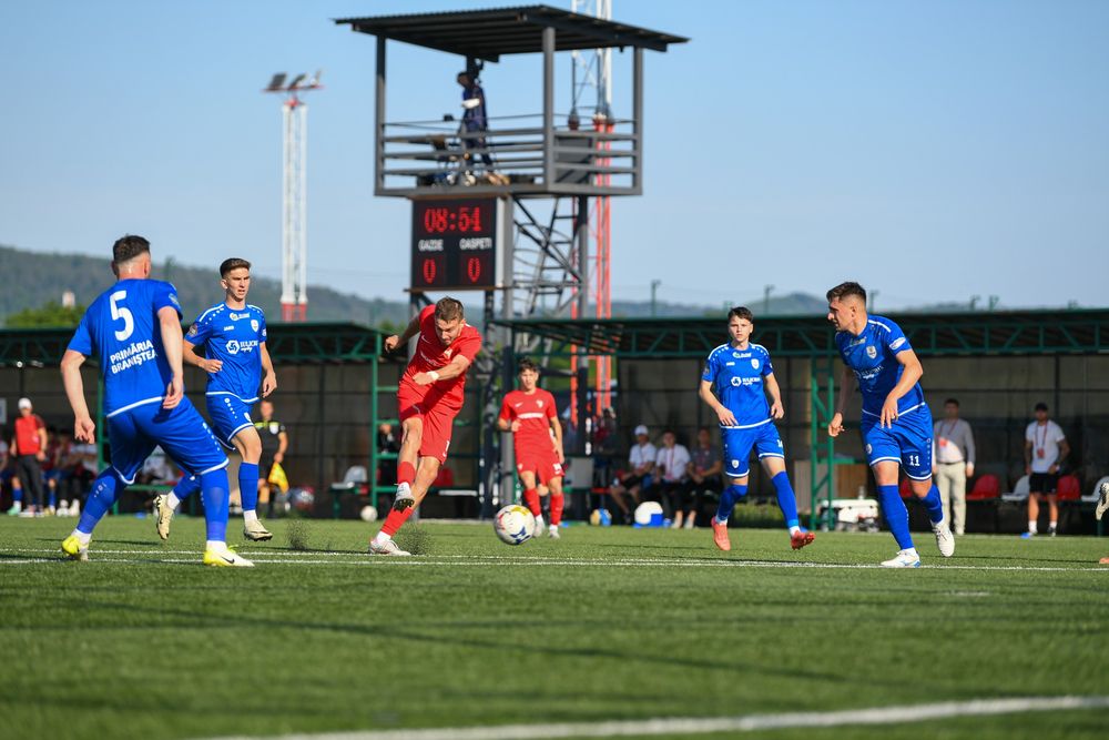 Pe „Oțelul”, „alb-roșii” au deschis scorul în minutul 8, prin Gabi Cîrstean, care a plasat cu latul, din vole, balonul în colțul din stânga al porții gazdelor, pentru ca la două minute după pauză, omul-orchestă Alexandru Aftanache să majoreze avantajul printr-o execuție fără speranțe pentru defensiva Unirii Braniștea.