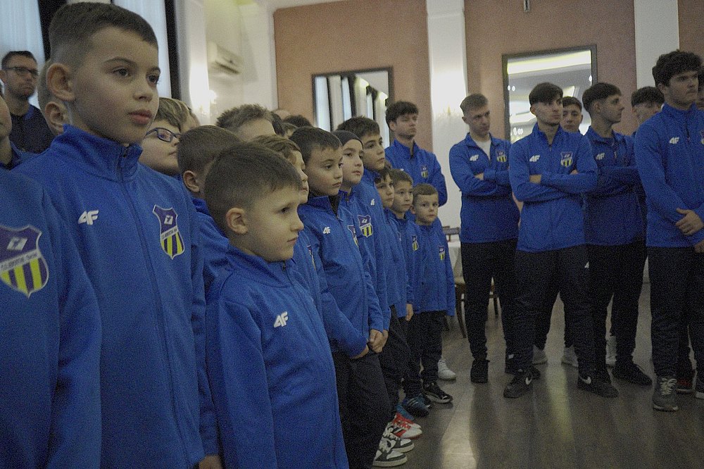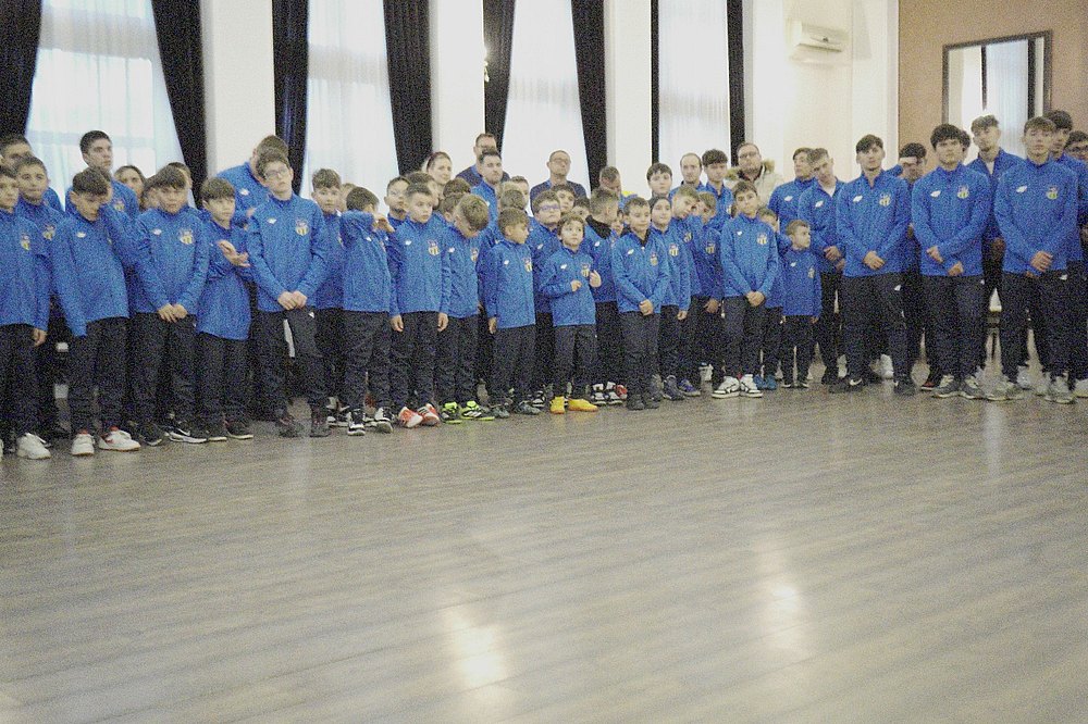 Rând pe rând s-au prezentat în fața asistenței, rostind câte un mic discurs, șeful Centrului de Copii și Juniori, Dan Crețu și antrenorii Giani Florean, Valentin Cioancă (U17 și U19), Radu Sascău (U16), Eduard Ciulin (U15), Anton Coșa (U12 și U13), Cosmin Ursache (U9 și U11) și Andrei Stratulat (antrenor cu portarii). Evident, nu au lipsit nici cei care alcătuiesc staff-ul echipei de seniori (acolo unde toți micuții „aviatori” își doresc să evolueze într-o bună zi): Andrei Vatră, Dan Bolfă, Georgian Bordeanu și Adrian Iosub.