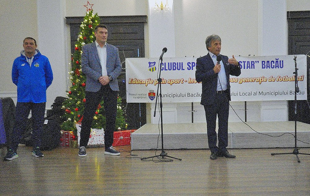 „Dumneavoastră, părinții, sunteți eroii din spatele copiilor”, și-a început discursul președintele clubului băcăuan, Doru Damaschin, care a continuat: „ Iar voi, copii, ați venit la școala de fotbal Aerostar- pentru că noi nu ne intitulăm Academie, ci școală, dar să știți că depășim multe Academii din țară- așadar, voi ați venit aici pentru a vă completa educația pe care o primiți în mediul didactic.