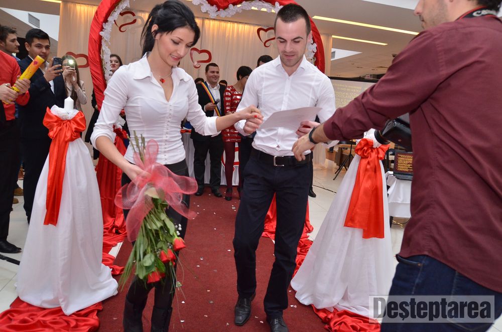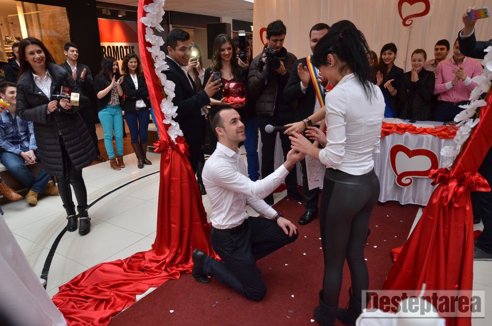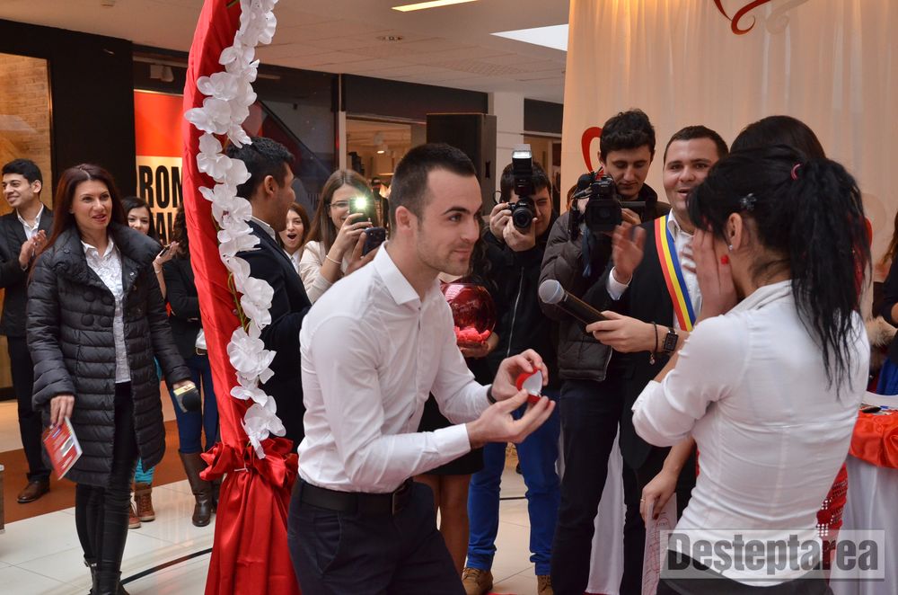 Un tanar bacauan i-a facut o surpriza de proportii prietenei sale, chiar de Ziua Indragostitilor: a adus-o la Mall, promitandu-i ca va participa la o ceremonie de casatorie pentru o zi, insa, in final a cerut-o de sotie.
