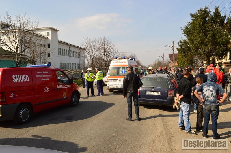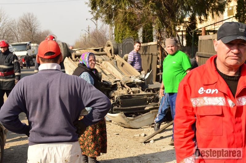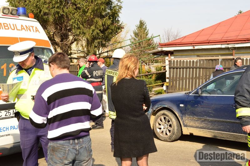 La fata locului au ajuns echipaje ale Ambulantei, Politiei, SMURD si EON GAZ.
