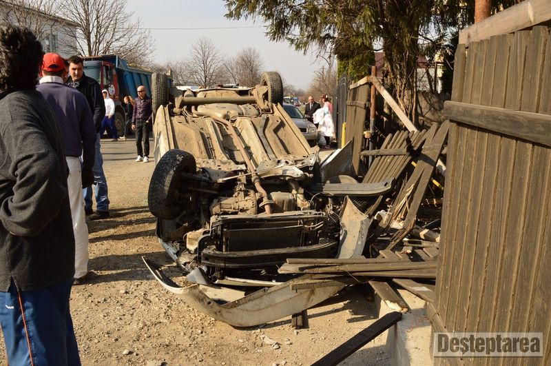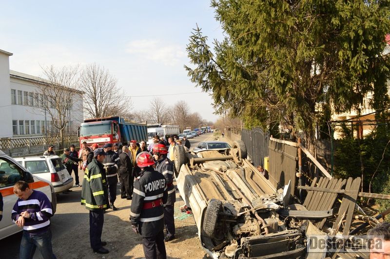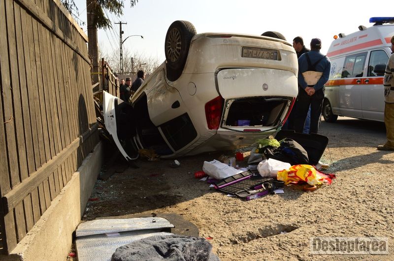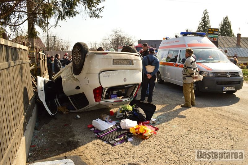 O soferita a fost ranita, astazi, intr-un accident petrecut pe strada Arcadie Septilici din municipiul Bacau. Politistii spun ca masina condusa pe care o conducea a intrat intr-o depasire periculoasa si a lovit o bordura, dupa care s-a rasturnat si a lovit alte doua autoturisme, oprindu-se intr-un gard.