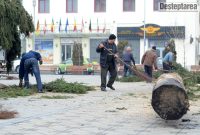 Arborele a fost curatat de crengi iar trunchiul urmeaza sa fie pus la uscat pentru ca municipalitatea are cateva idei pentru folosirea acestuia.