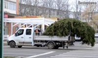 Bradul de Craciun, amplasat in Piata Tricolorului din Bacau, a fost dat jos, astazi, de angajatii Primariei.