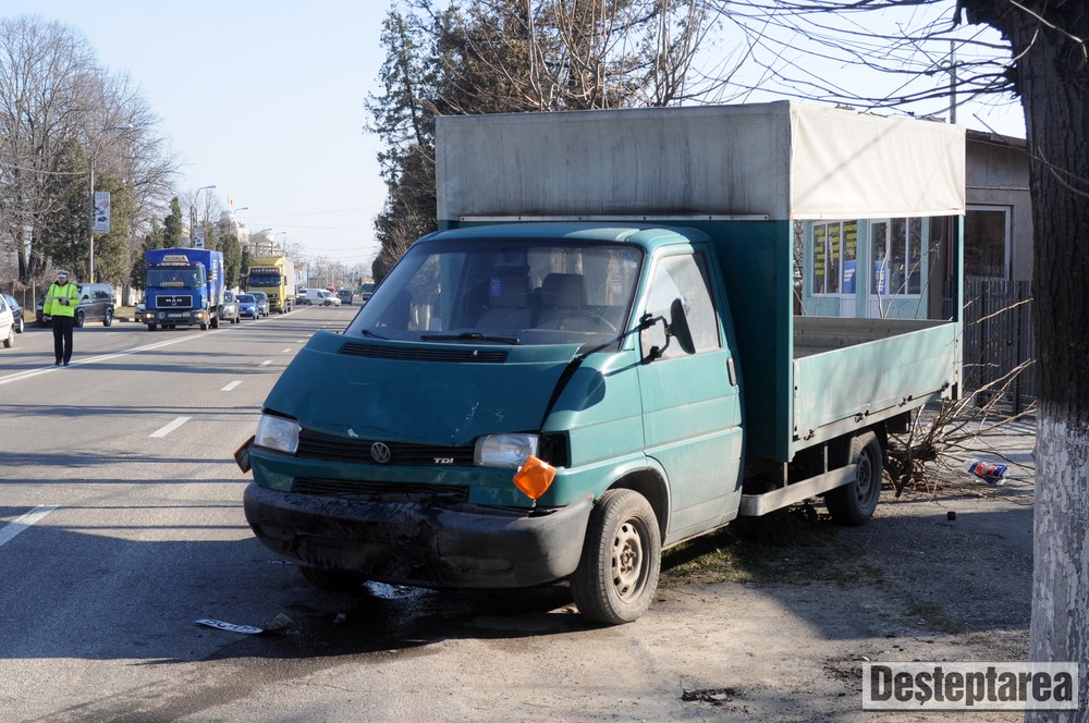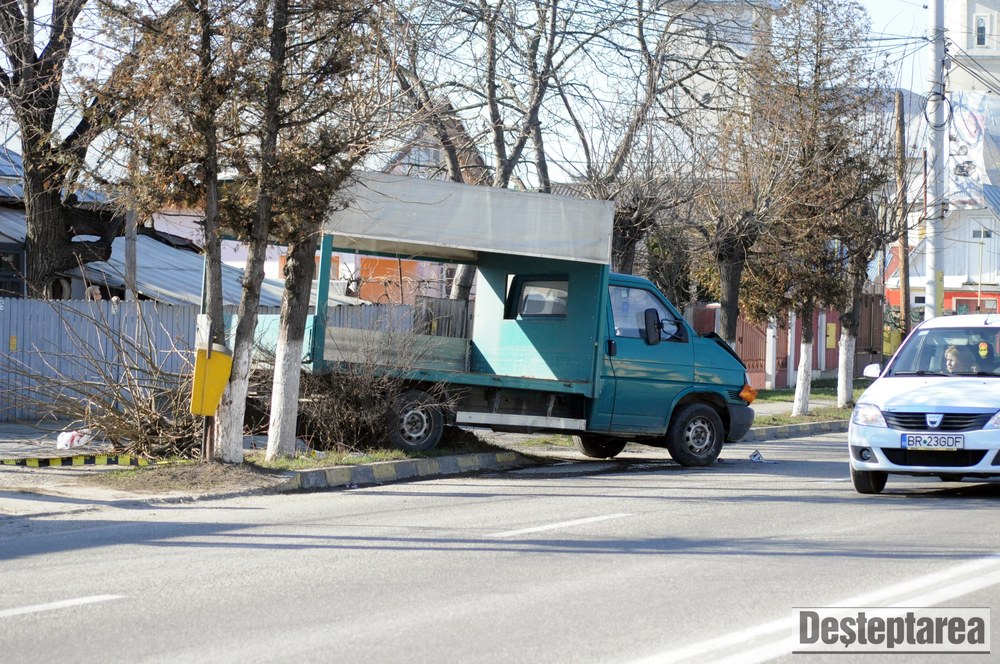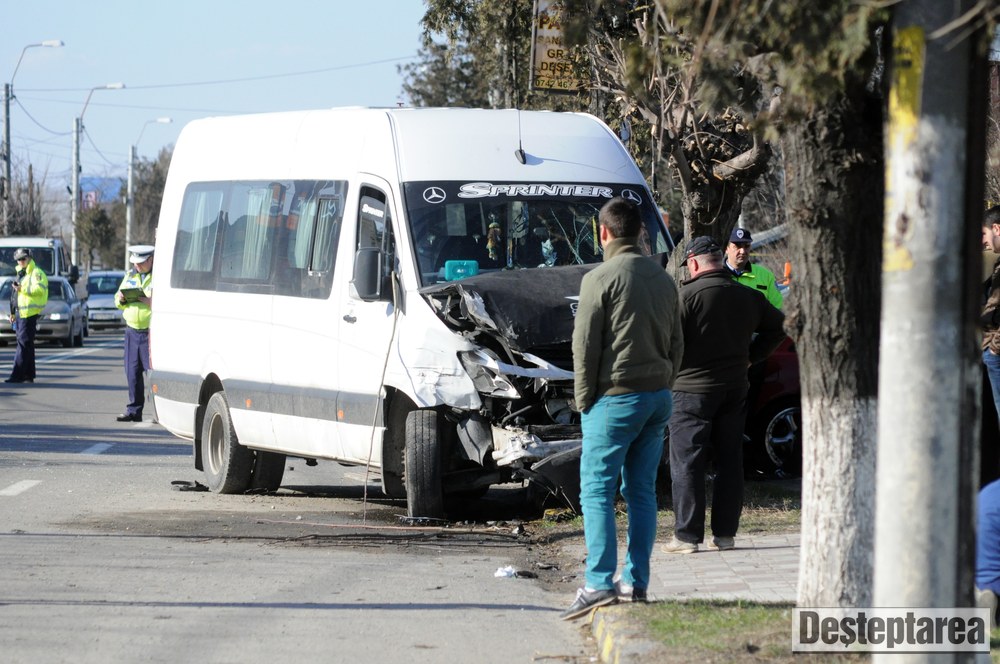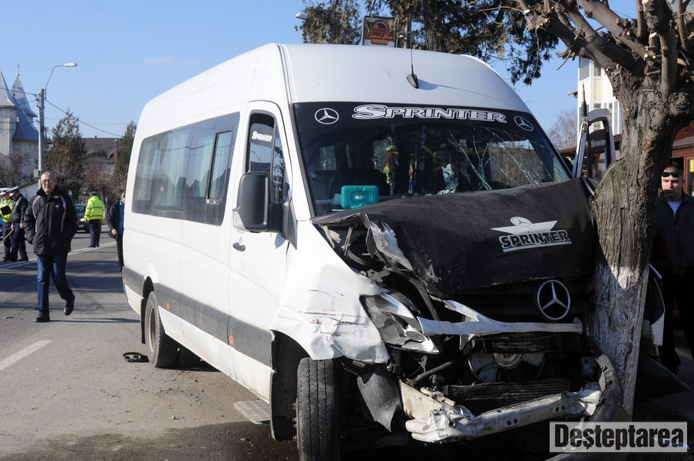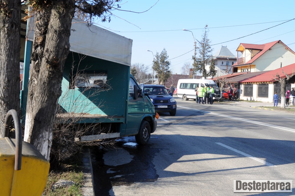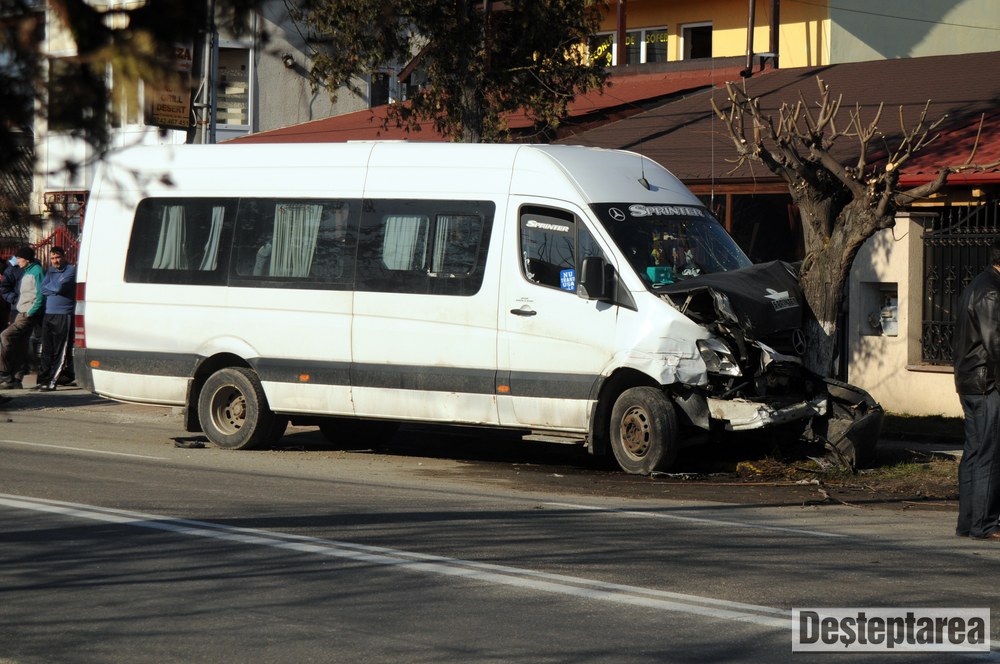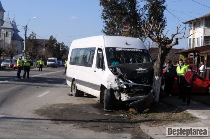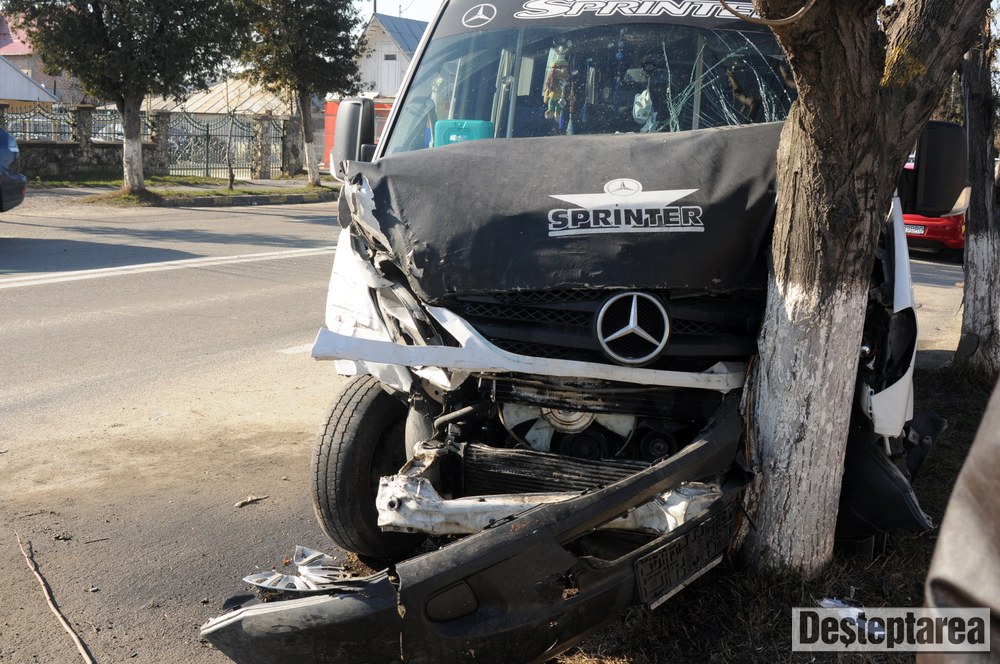 Golful a scapat doar cu tabla sifonata, insa microbuzul si autoutilitara s-au izbit de câte un copac.