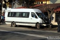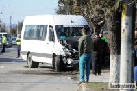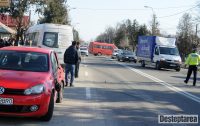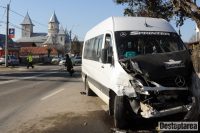 Soferul microbuzului a incercat sa evite autoturismul, a tras de volan si s-a lovit de o autoutilitara.