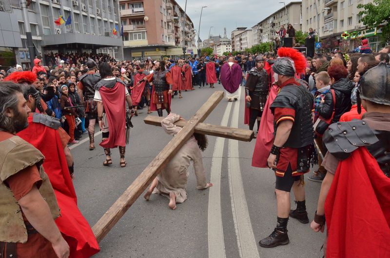 Sute de bacauani au asistat, marti dupa-amiaza, la o dramatizare a Drumului Crucii realizata in zona centrala a Bacaului. Actiunea a fost organizata de artistul ceramist Daniel Les, Asociatia Drumul Crucii în colaborare cu Asociația Bărbaților Creștini și Asociația Servus – Baia Mare.