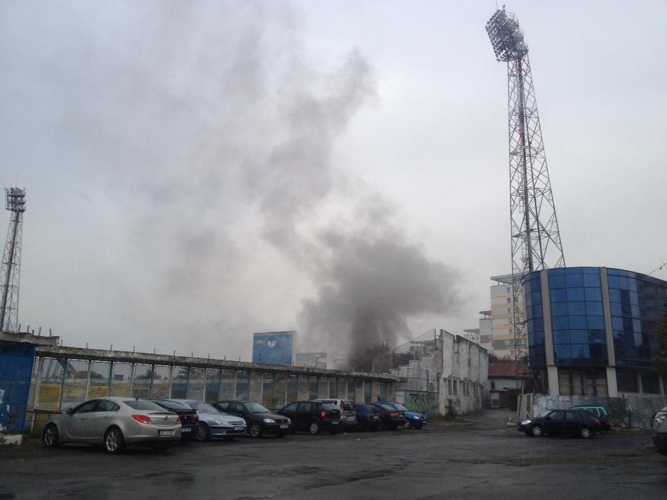 FOTO: Incendiu sub peluza Stadionului Municipal