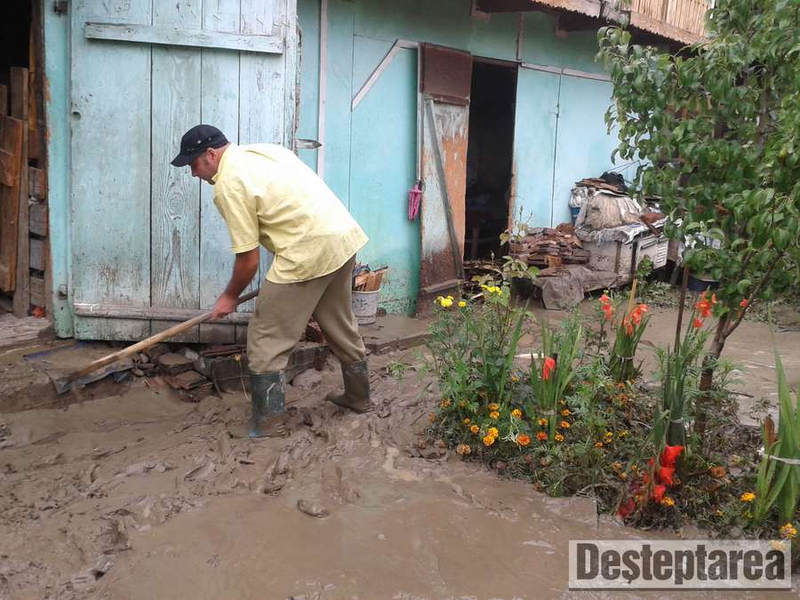 Acelasi scenariu se repeta si la Neculai Zaharia. Omul nu-si poate stapâni lacrimile când vede ca toata casa este plina de noroi, iar lucrurile cumparate cu truda sunt acum distruse. „A intrat apa peste tot. Ce puteai sa mai faci. A fost mai mare ca in 2005, dar nu a facut ravagii ca atunci, ca s-a retras repede. Când am vazut cum creste pârâul si ca se umple ograda de apa am luat nepotii si am fugit la gara”, povesteste batrânul.