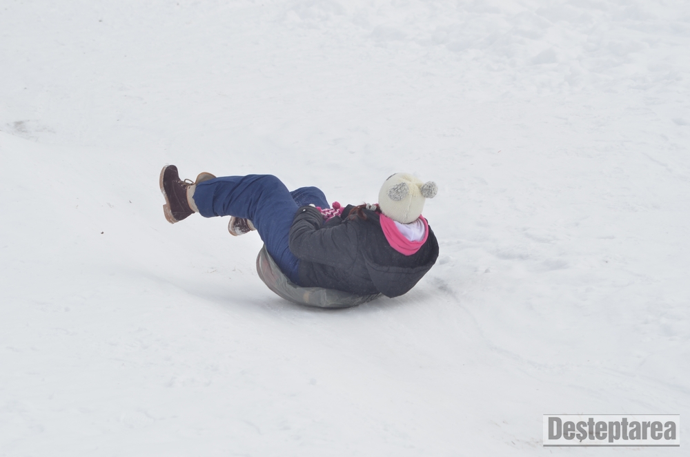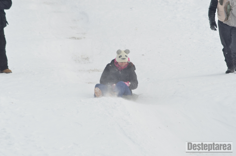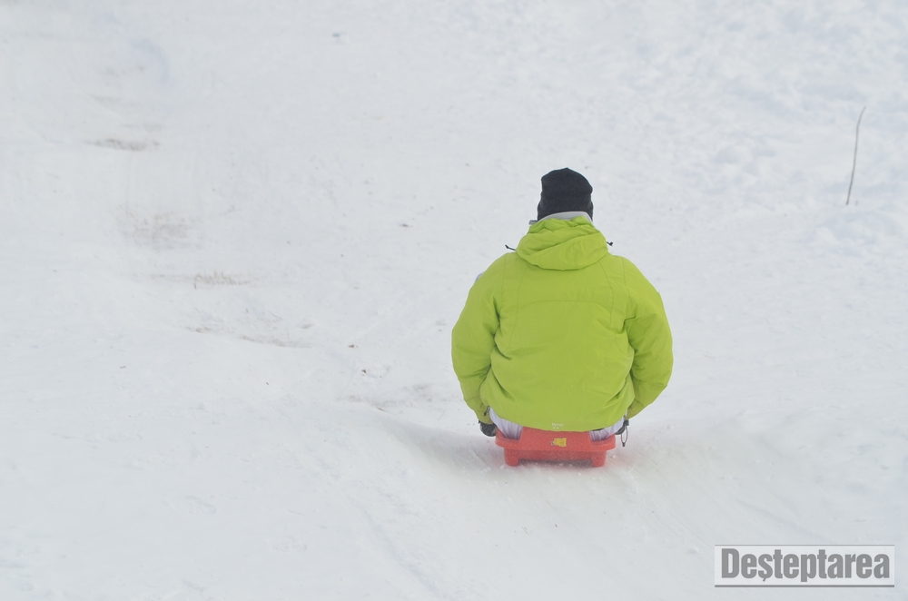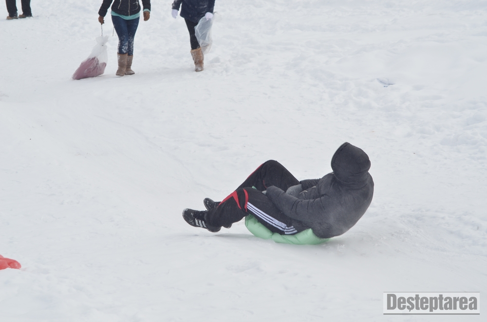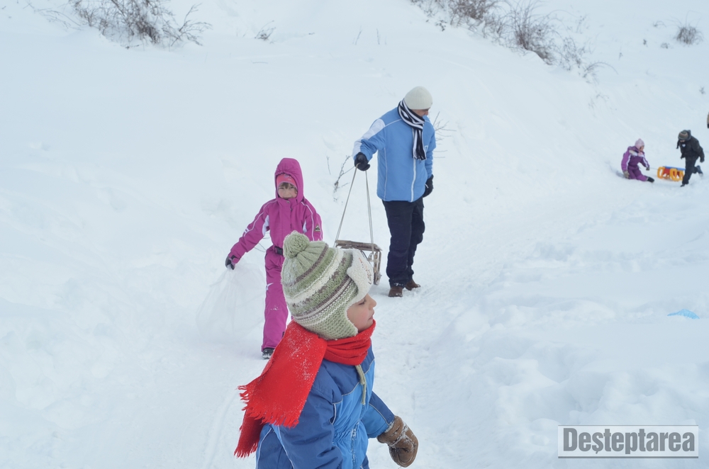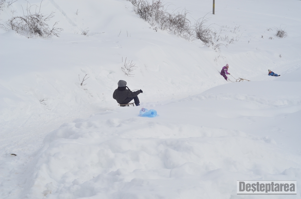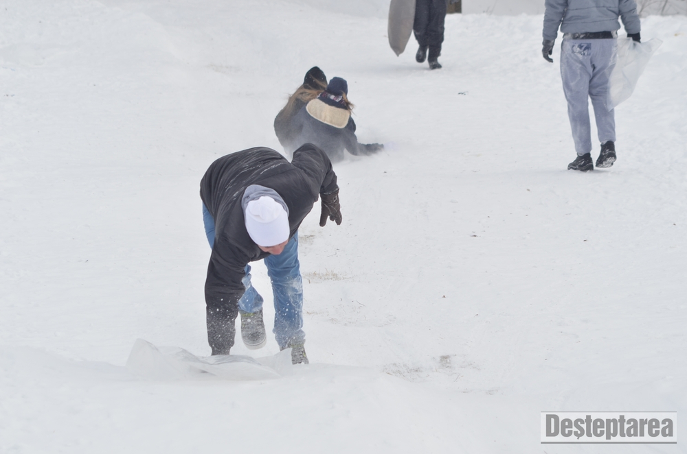 Derdelusul de pe dealul Magura, de langa Bacau, a fost luat cu asalt de copii, mici si mari. Care cu sania, care cu sacul de nailon, mai inghetati sau mai dezghetati…