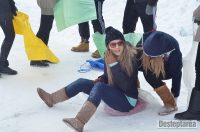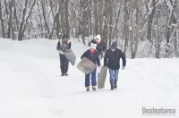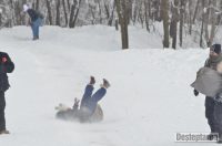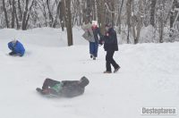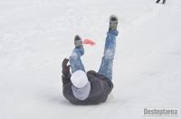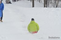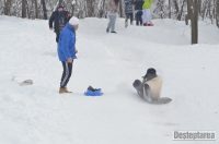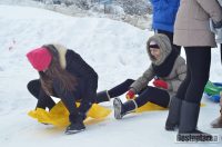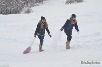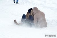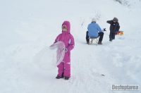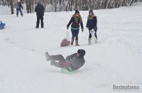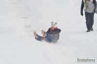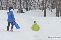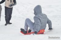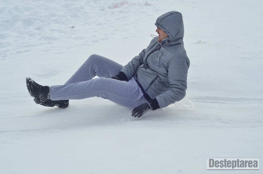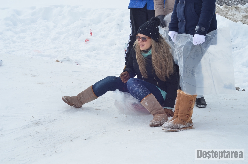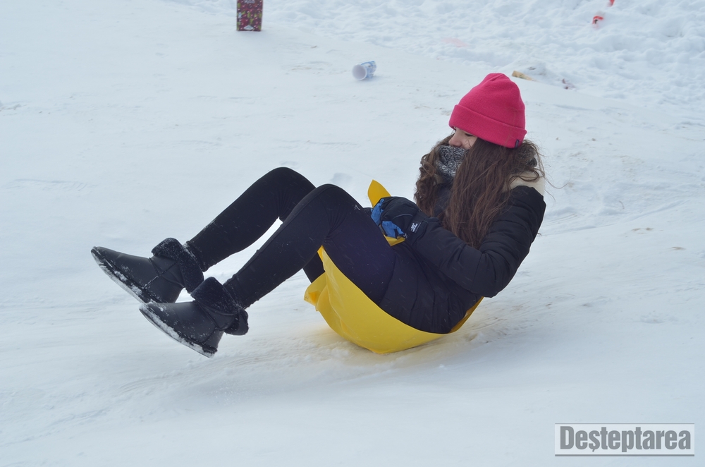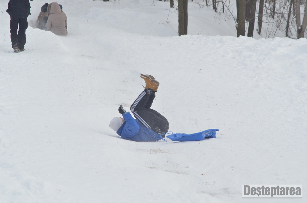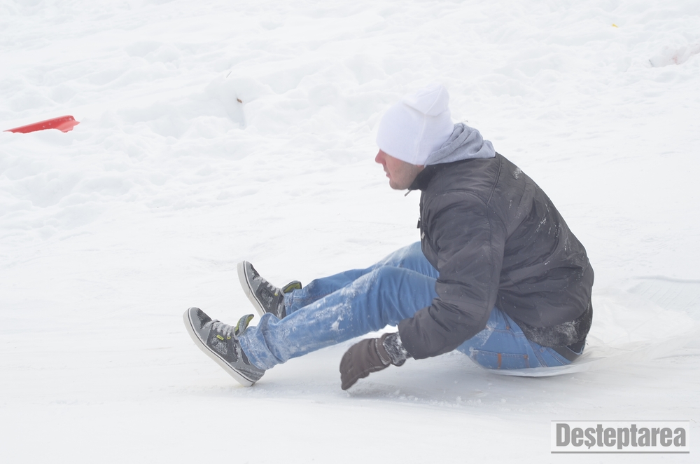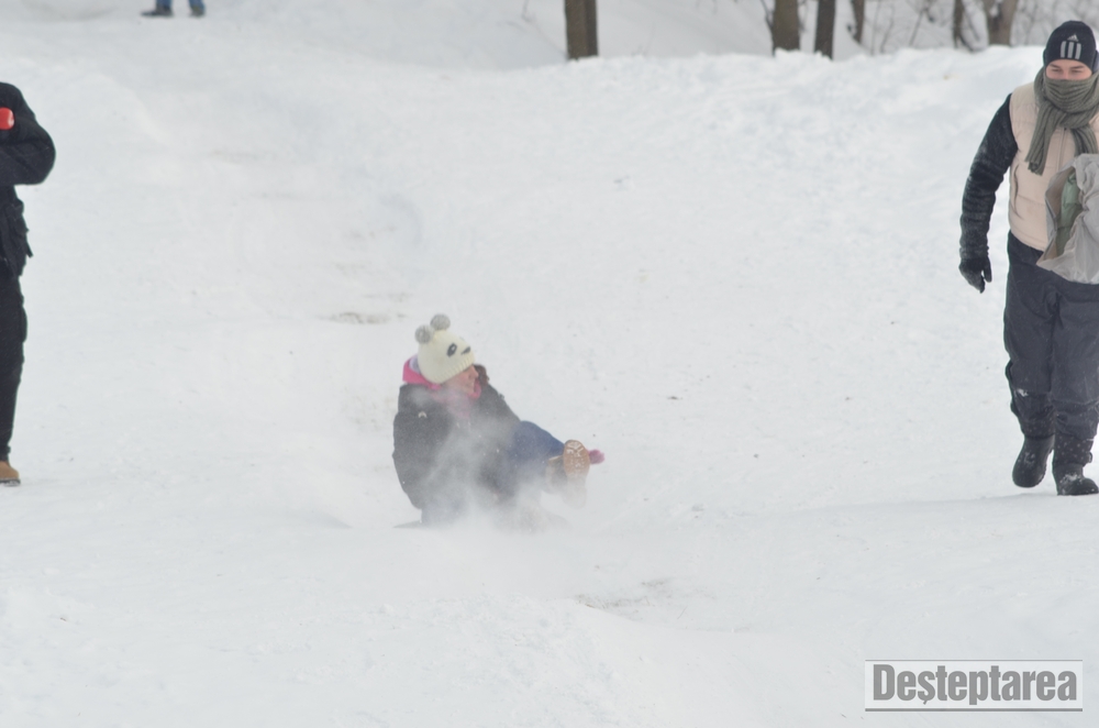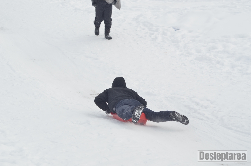 Derdelusul de pe dealul Magura, de langa Bacau, a fost luat cu asalt de copii, mici si mari. Care cu sania, care cu sacul de nailon, mai inghetati sau mai dezghetati…