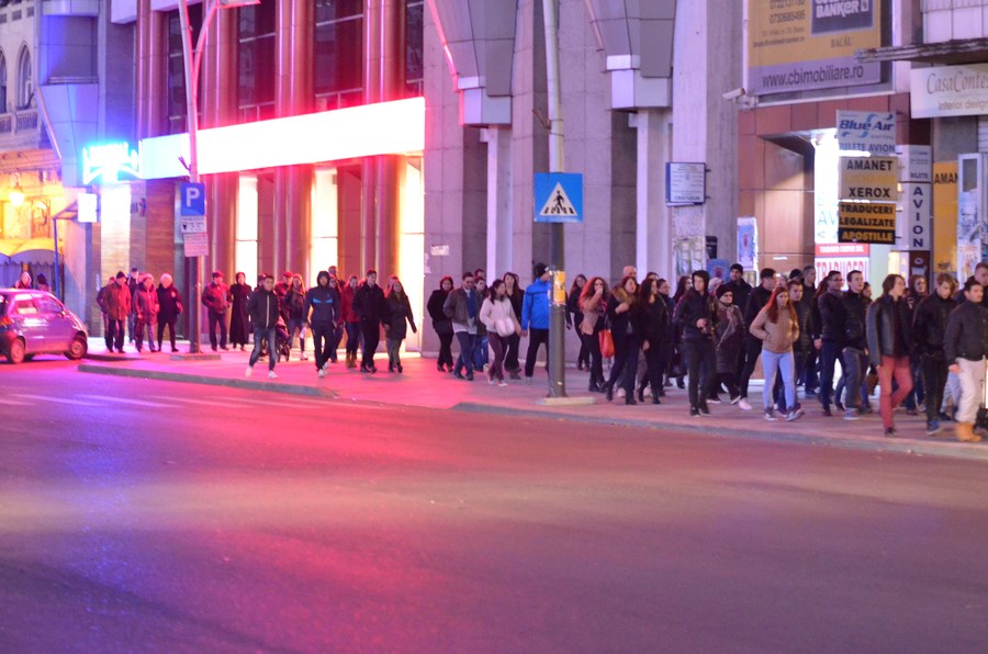 Sute de bacauani s-au adunat, in aceasta seara, in fata Prefecturii pentru a aprinde lumanari in memoria celor care au murit in incendiul de la Club Colectiv, din Bucuresti.